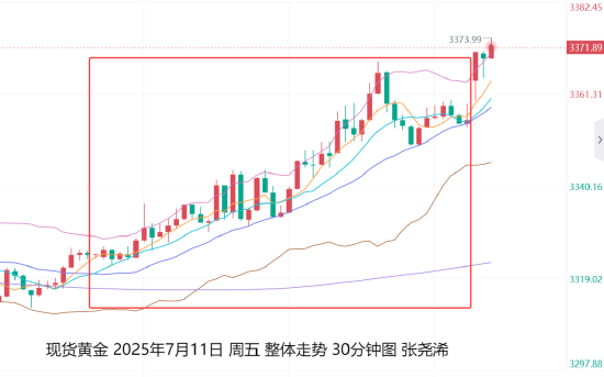 展望本周周一(7月14日):国际黄金开盘高开约6美金至3363.64美元/盎司,并先行走强,一度冲击3370美元上方,受到周末关税升级,和美联储前理事沃什:美联储现在应该降息等利好因素,而高开走强。