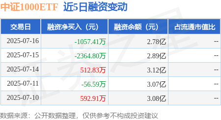 本站消息,7月16日,中证1000ETF(512100)融资买入4986.6万元,融资偿还6044.01万元,融资净卖出1057.41万元,融资余额2.78亿元。