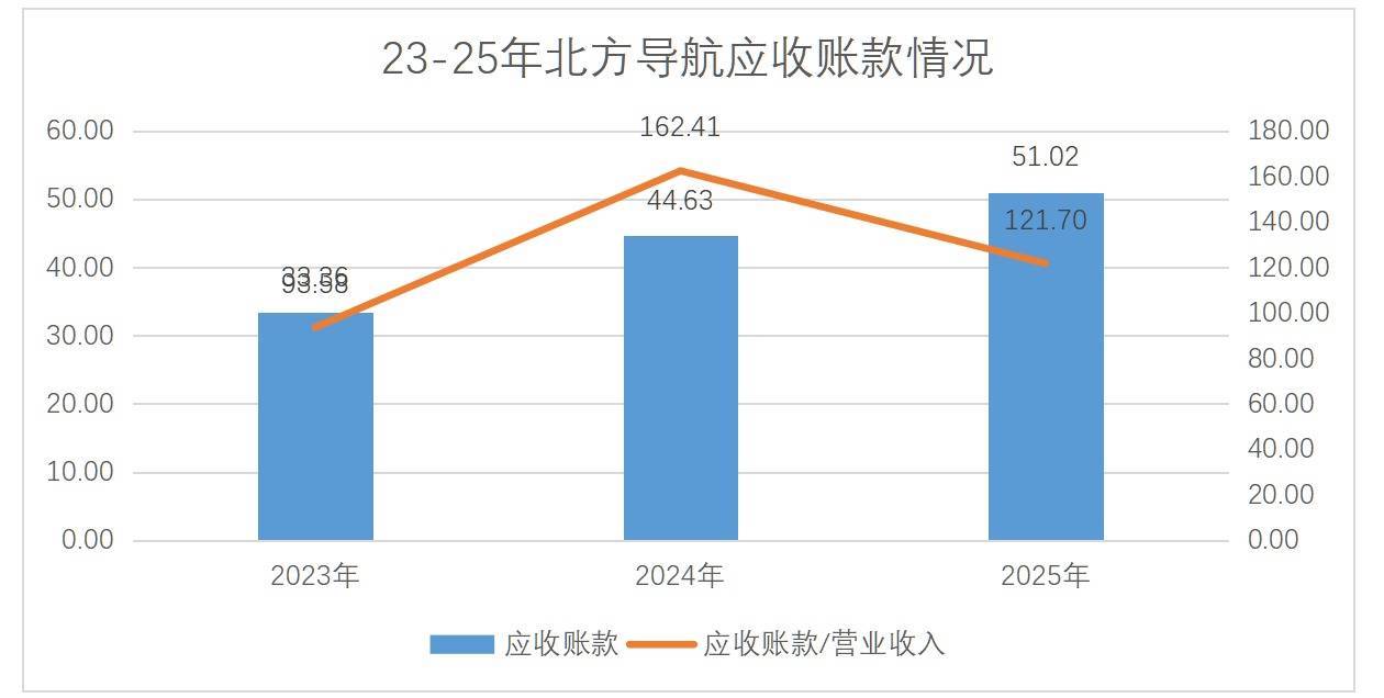 在业绩波动增长的背后,北方导航近三年财务数据暴露出明显结构性问题,突出表现在应收账款大幅攀升、经营现金流连续为负、毛利率下滑,这些问题共同构成制约公司高质量发展的核心短板。
